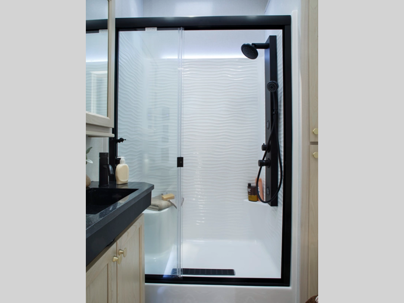 • 48" x 30" One Piece, Fiberglass Shower with glass doors, and Upgraded Shower Head
